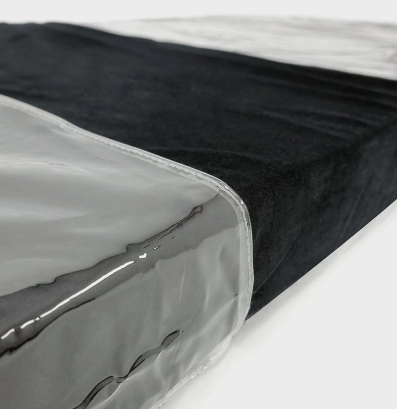 Potah je vyroben z vysoce kvalitního PVC, je odolný, pružný a odolný vůči skvrnám. Jeho největší výhodou je snadné čištění – stačí jej otřít vlhkým hadříkem, abyste okamžitě odstranili veškeré nečistoty a připravili matraci na další ošetření. Díky své průhledné a neutrální struktuře neovlivňuje pohodlí ani vzhled sametového povrchu a zároveň poskytuje další vrstvu ochrany.